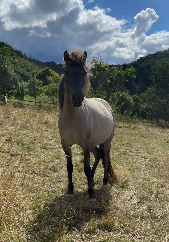 Stjörn ist eine freundliche sehr aufmerksame, respektvolle und feinfühlige Stute. Sie hat viel Tölt und wird sicherlich ein 5 Gänger. Sie ist Halfterführung und wurde von uns schon als Handpferd mit zum Ausritt genommen. Sie kennt Barhufbearbeitung und hat alle Tetanusimpfungen erhalten. Regelmäßige Entwurmung ist selbstverständlich.